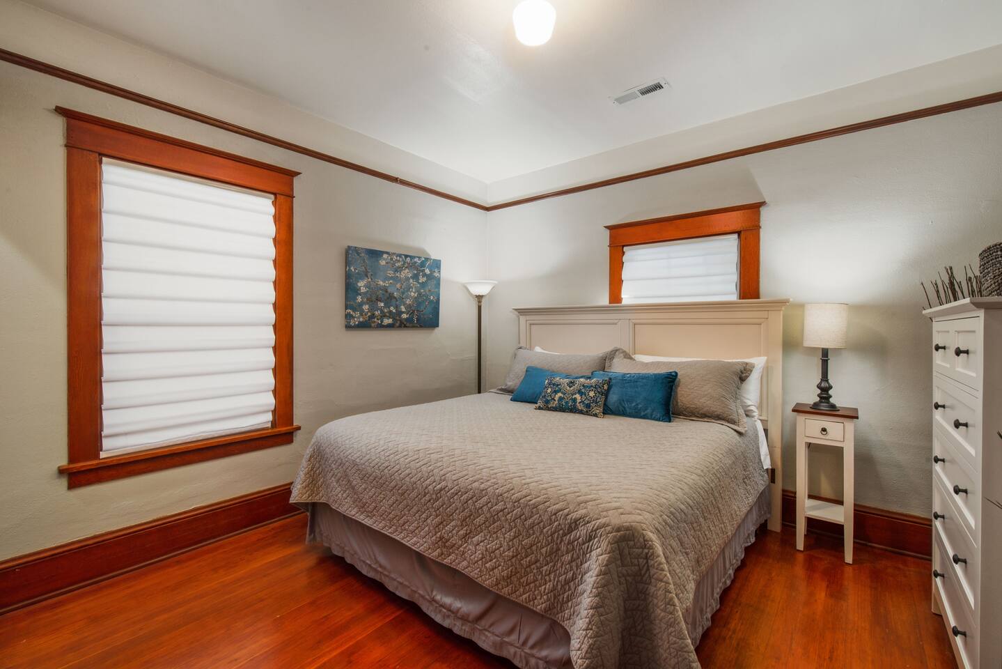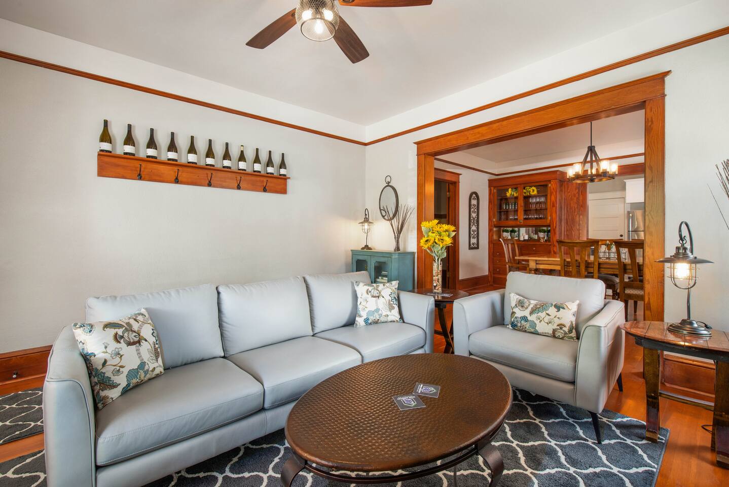 Stay in a beautifully restored 1910 bungalow with a charming carriage house that transforms into a covered open-air entertaining space, in the heart of McMinnville Wine Country. Just one block from top wine tasting rooms, chef-driven dining, boutique shops, art galleries, and festivals. This walkable retreat blends historic character with modern comfort. Enjoy original details, a cozy dog-friendly fenced yard, and inviting indoor-outdoor spaces—perfect for relaxing after a day of exploring.
