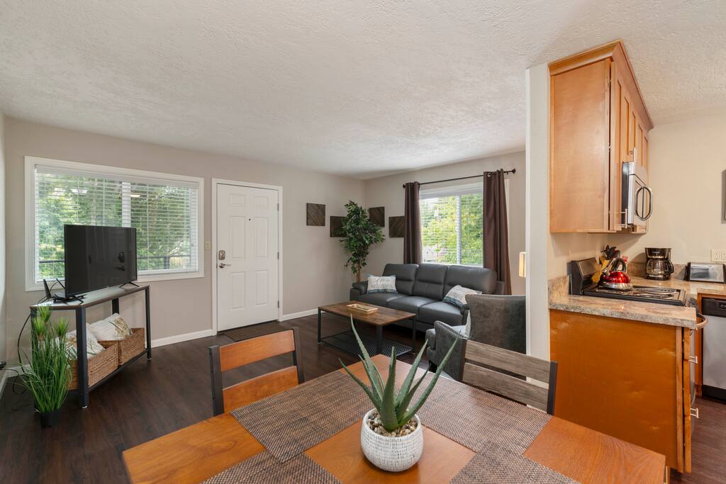 Fully furnished 1BR/1BA extended stay apartment, located on a quiet street, just 3-blocks from McMinnville's famous Third St. Tastefully decorated, enjoy a fully stocked kitchen, queen bed with linens, plush pillows, towels, SmartTV, on-site laundry, with free parking, WIFI, and all utilities included. Walk to downtown and explore wine, dining, pubs, shops, whole foods grocery, seasonal festivals, and farmer's market. Minimum stay is 28 nights. Bring your suitcase and we'll handle the rest.