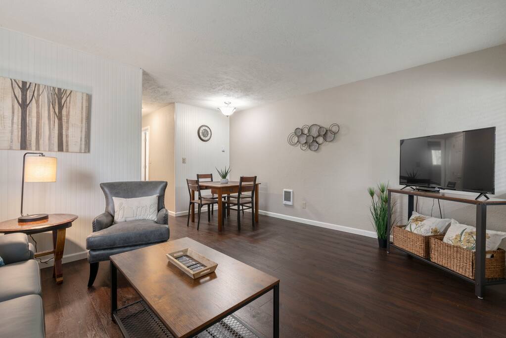 All of our extended stay apartments (including unit #10) have been recently remodeled and furnished within the past few years. This 1-bedroom/1-bath apartment is located on the 2nd floor. The layout is an open floor plan with LVP flooring, newer cabinets, stainless steel appliances, a full-sized fridge, a stove/oven, a built-in microwave, and all-new fixtures. Once you are in the apartment, there are no additional stairs/steps; it is all on one level. There are two onsite laundry rooms - one located on each floor for your convenience. The parking is free and unassigned, and there is never a problem finding a parking space. You can park in the lot behind the building or in front of the building anytime. The exterior of the building is well-lit, and we have 24-hour surveillance cameras set up. We have a maintenance team to take care of you and the apartment. This is your home away from home, and we want you to feel comfortable. Just inquire, and we will get right with you to get you booked. If you need flexible terms, don't hesitate to ask, and let's see what we can figure out.