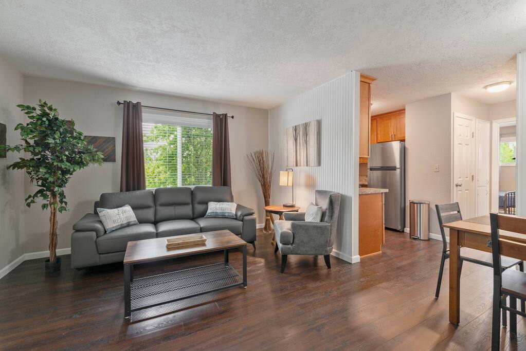 Fully furnished 1BR/1BA extended stay apartment, located on a quiet street, just 3-blocks from McMinnville's famous Third St. Tastefully decorated, enjoy a fully stocked kitchen, queen bed with linens, plush pillows, towels, SmartTV, on-site laundry, with free parking, WIFI, and all utilities included. Walk to downtown and explore wine, dining, pubs, shops, whole foods grocery, seasonal festivals, and farmer's market. Minimum stay is 28 nights. Bring your suitcase and we'll handle the rest.