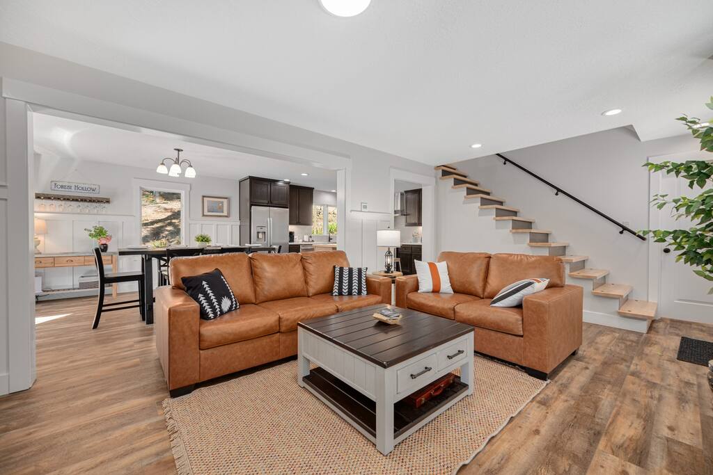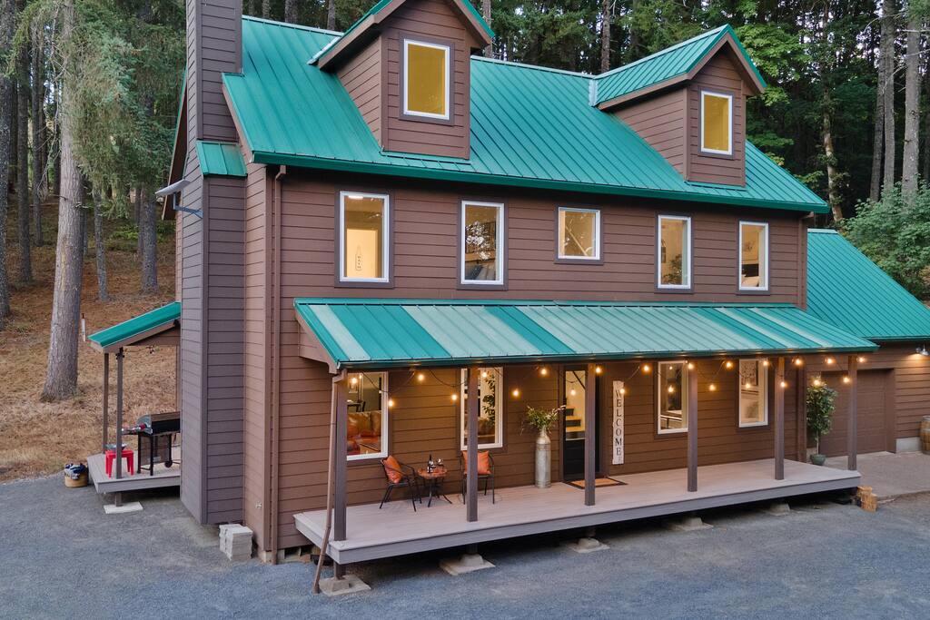 Forest Hollow is nestled in a private Willamette Valley forest in Oregon Wine Country, just 20 minutes from McMinnville's historic downtown. This spacious 4BR/3BA newly remodeled home comfortably sleeps 8 with quality linens and a large dining table for everyone to gather. Enjoy multiple outdoor seating areas, a fire pit, a grill, and a cozy indoor fireplace. Surrounded by deer, elk, birds, and natural wildlife, this secluded retreat blends modern comfort with serene natural beauty.